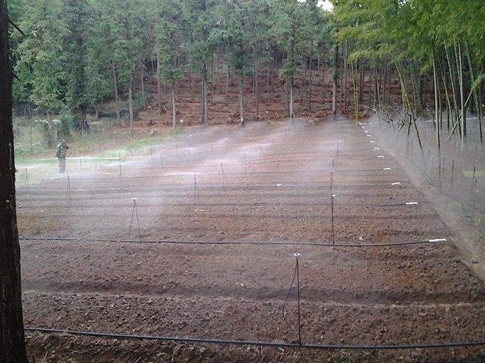 一般只用于灌水次 數頻繁、經濟價值高的蔬菜和經濟作物的灌溉。半固定式噴灌系統動力、水泵固定,輸(配)水 干管(分干管)埋入地下,工作支管和噴頭可以移動,由 連接在干管(分干管)伸出地面的給水栓向支管供水。